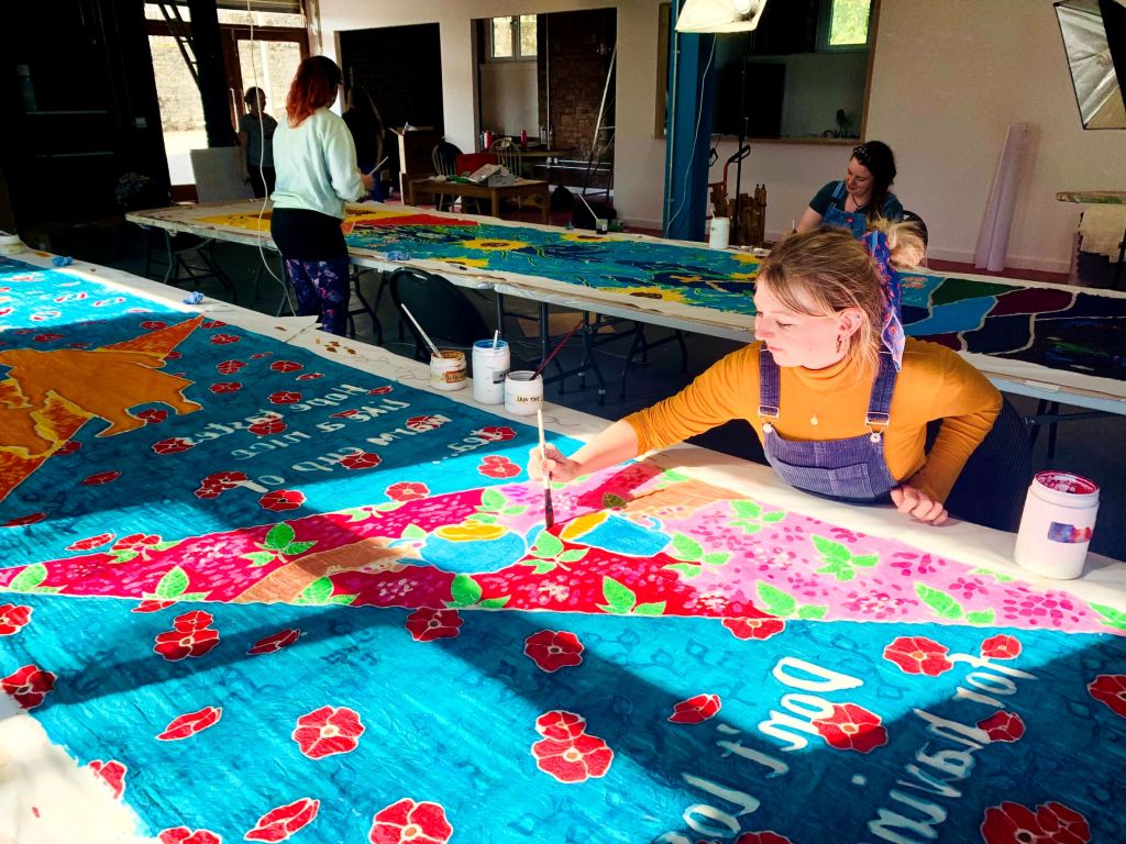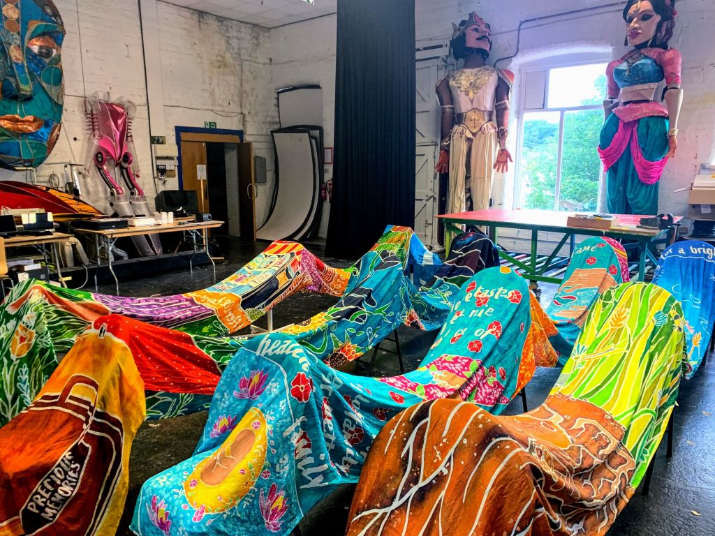 Cabasa Carnival Arts asked me to help out with one day’s PR for their project Flags For Hope, which saw artists and volunteers translating the hopes and dreams of residents of three Tameside residential homes into beautiful handpainted flags.
