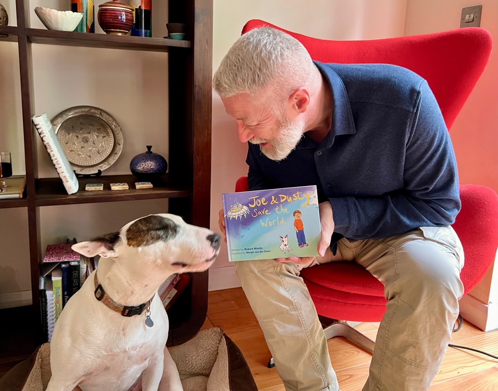 Author Rob Martin has asked me to PR his new children’s book Joe and Dusty Save The World. The rhyming picture book sees young disabled hero Joe take on an alien threat alongside his trusty sidekick, Dusty the dog.
